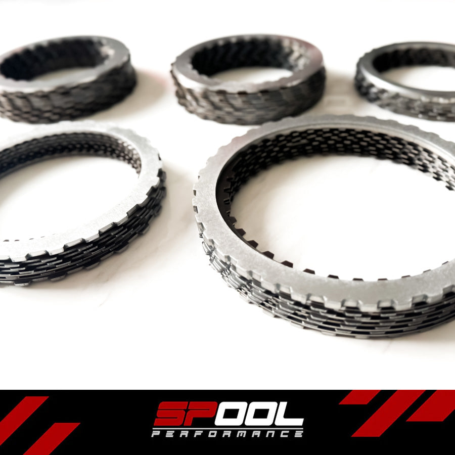 After over a year of rigorous testing, Spool Performance proudly presents our Stage 2 Transmission Kits for the 8HP70, 8HP75, and 8HP76 series transmissions. Engineered to exceed the limitations of stock components, these kits deliver an exceptional torque capacity of over 1200 ft-lbs. This comprehensive upgrade includes advanced friction materials developed in-house, billet 7075 heat-treated and hard-anodized custom-designed C and E hubs, bespoke pressure plates, apply plates, and increased clutch counts for every clutch pack.